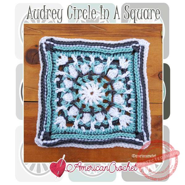 The Audrey Circle in a Square is the very first square in this CAL and it’s such a fun one to start with. This textured block works up in less than an hour, using just a few simple stitches along with front post and back post double crochet for extra dimension.