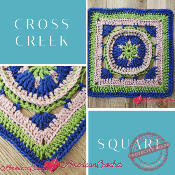 Congratulations on completing the Cross Creek Square – the sixth square in our Crochet Along! Stay tuned for next week’s pattern, where we’ll be adding even more exciting designs to your crochet project. The fun has just begun, and we’re thrilled to crochet along with you every step of the way.